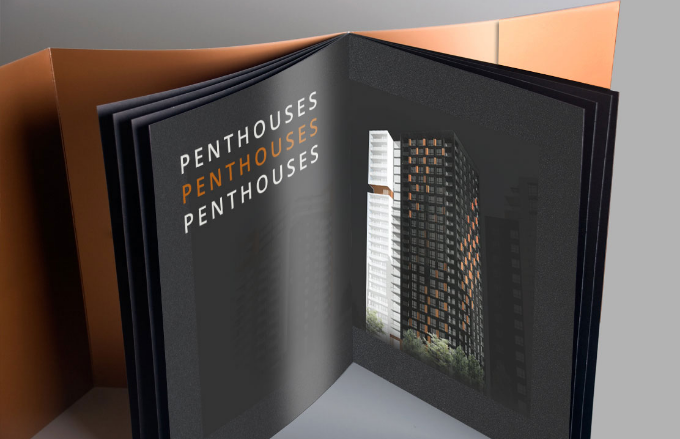 - Fournir tous les outils de communication nécessaires à la vente des unités: design du bureau de vente, brochures, fiches, plans d’étages, liste de prix, présentation vidéo, papeterie, master de publicité, affichage et plus.